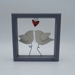 Wooden decorative handmade little prince holding a bunch of papier mache hearts.