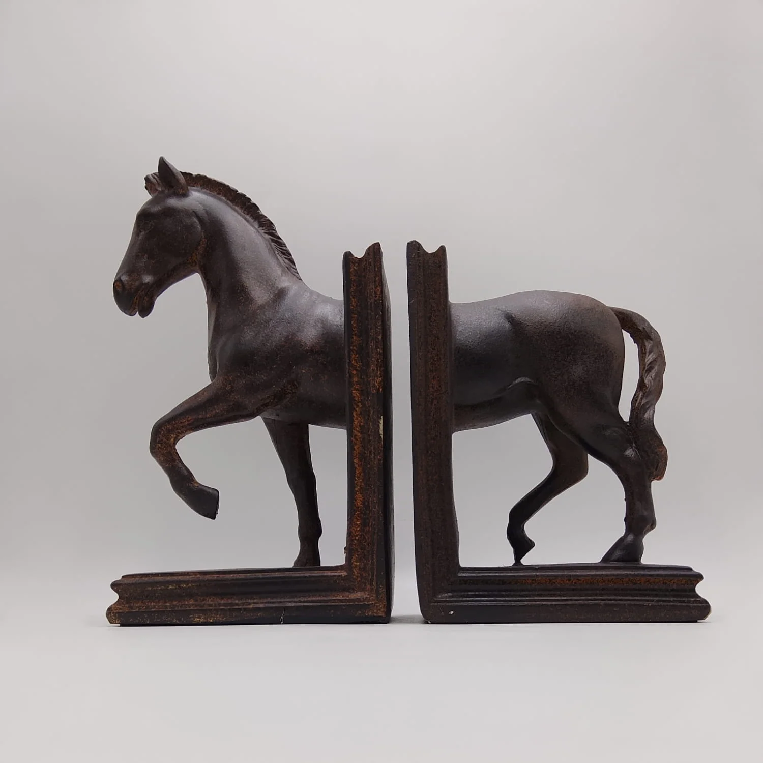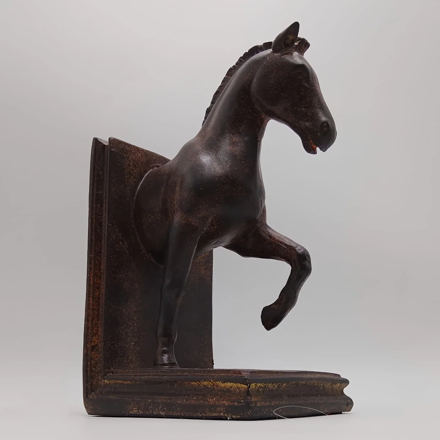 Elegant, set of two bookends crafted from resin, featuring a horse design.