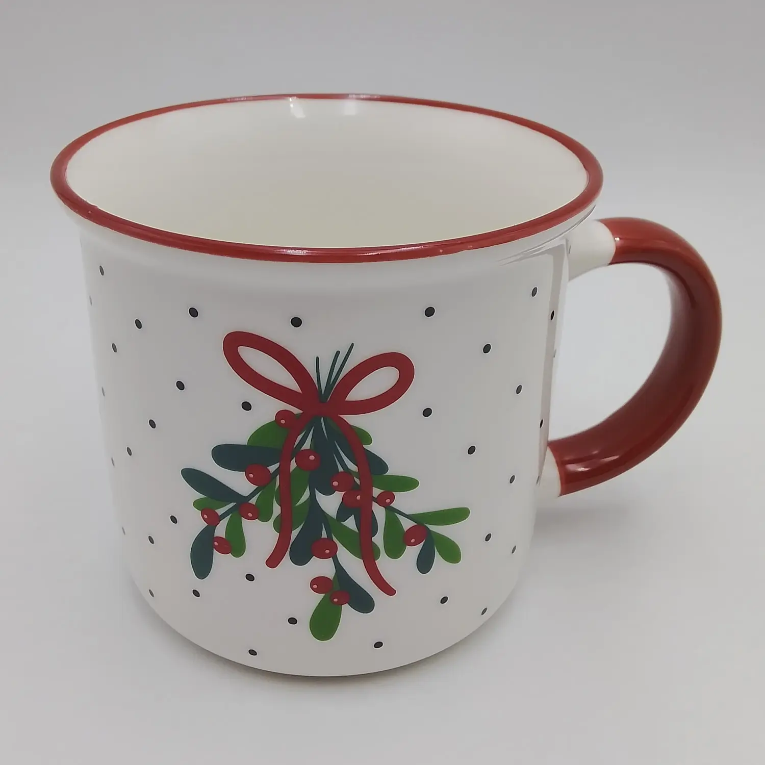 Ceramic mug decorated with mistletoe.