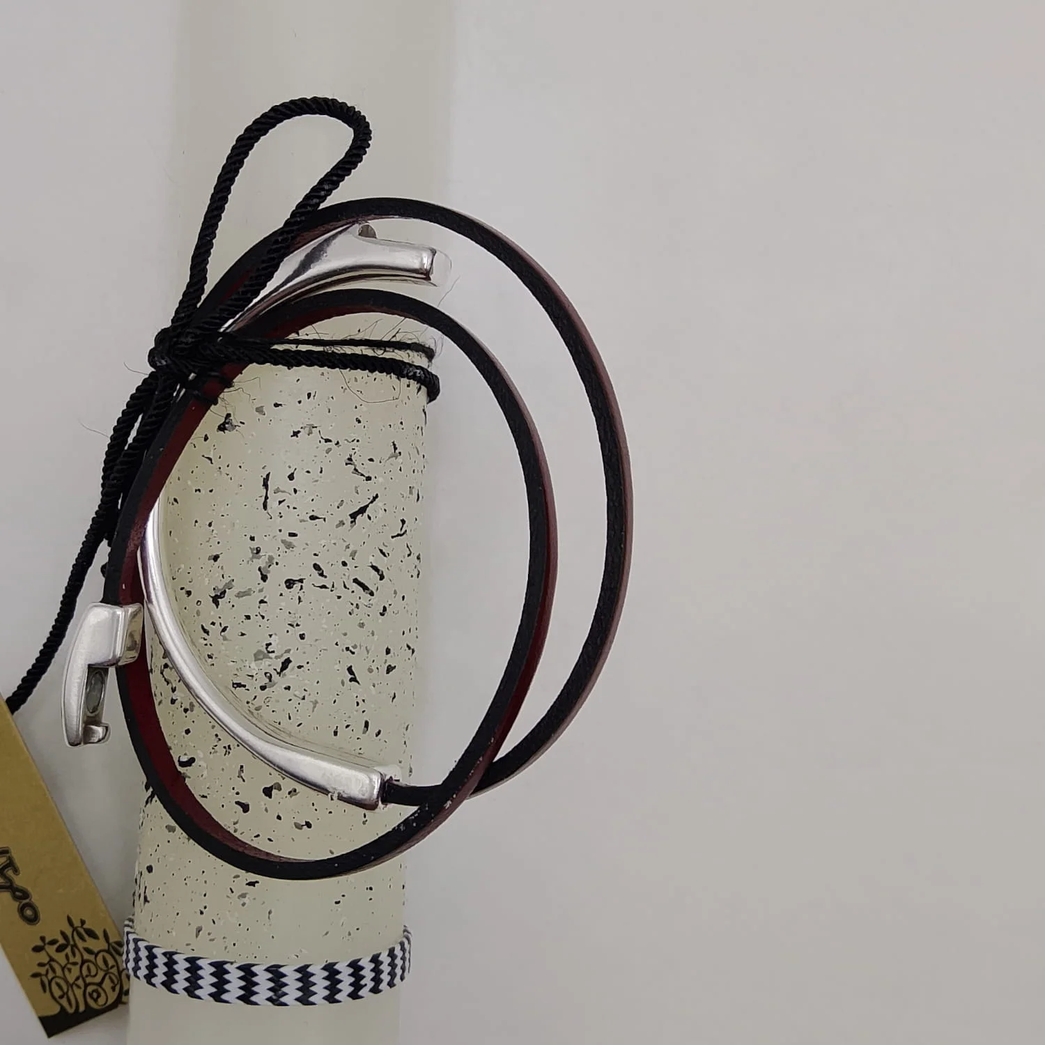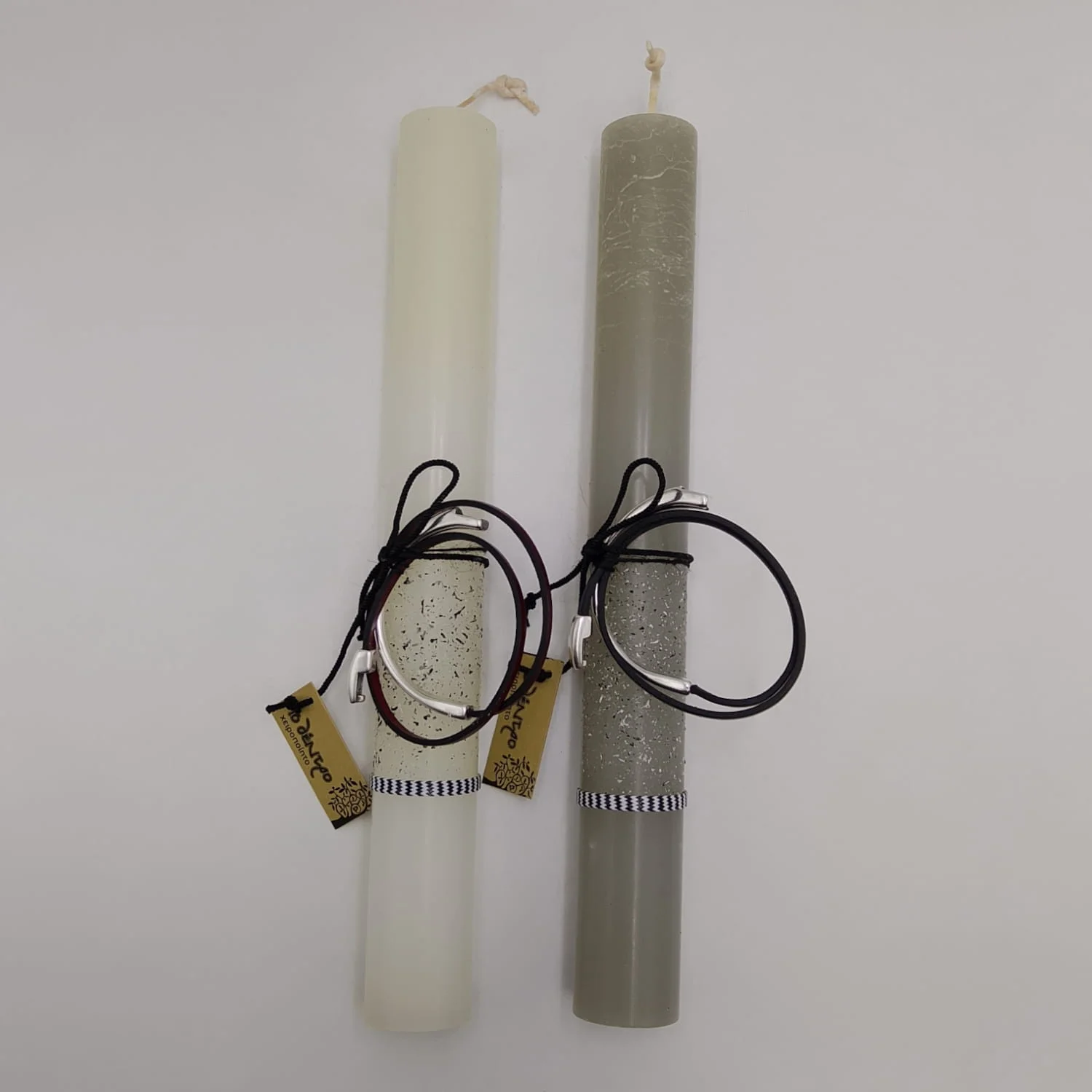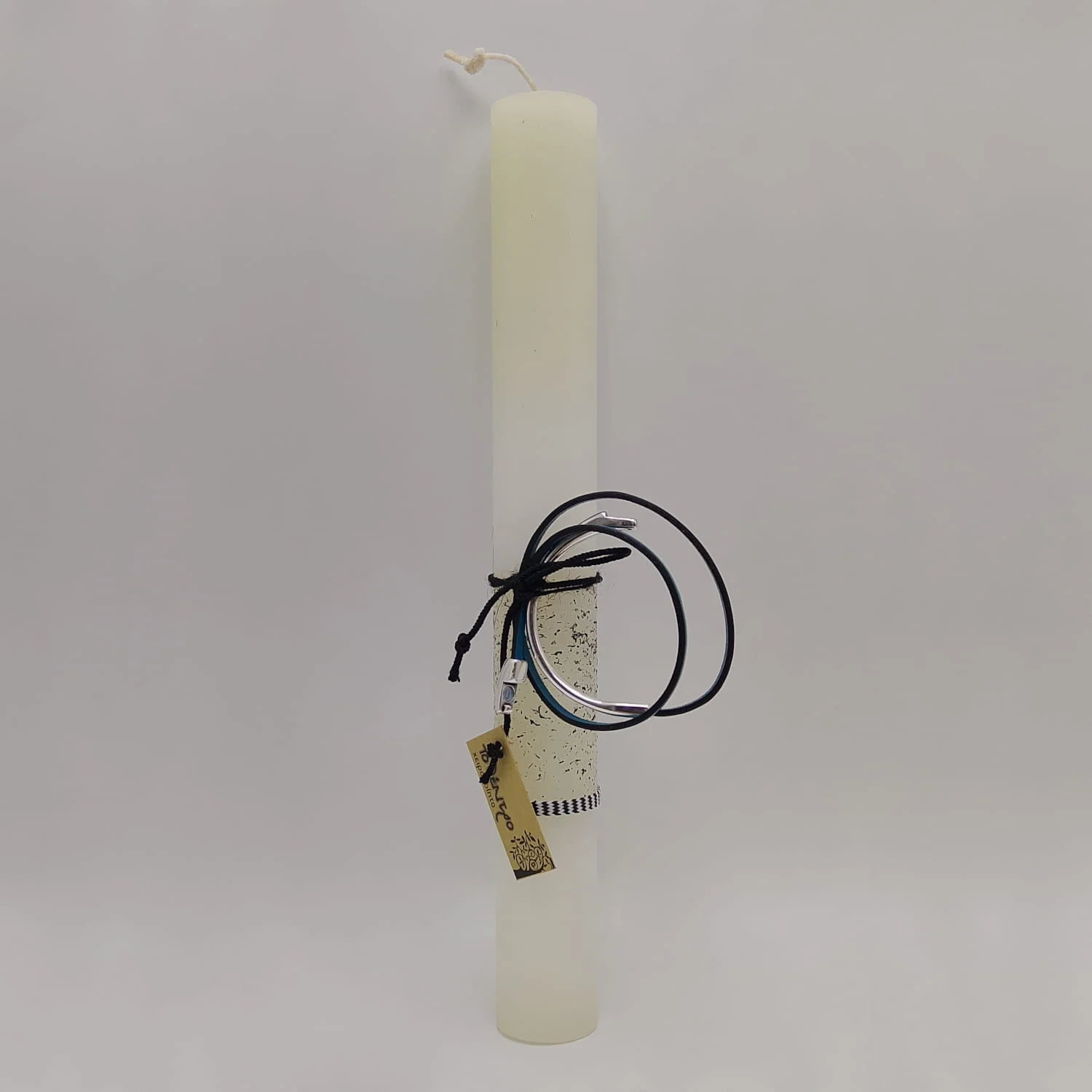 Στρογγυλή αρωματική λαμπάδα 25εκ. από παραφίνη στολισμένη με αντρικό βραχιόλι.