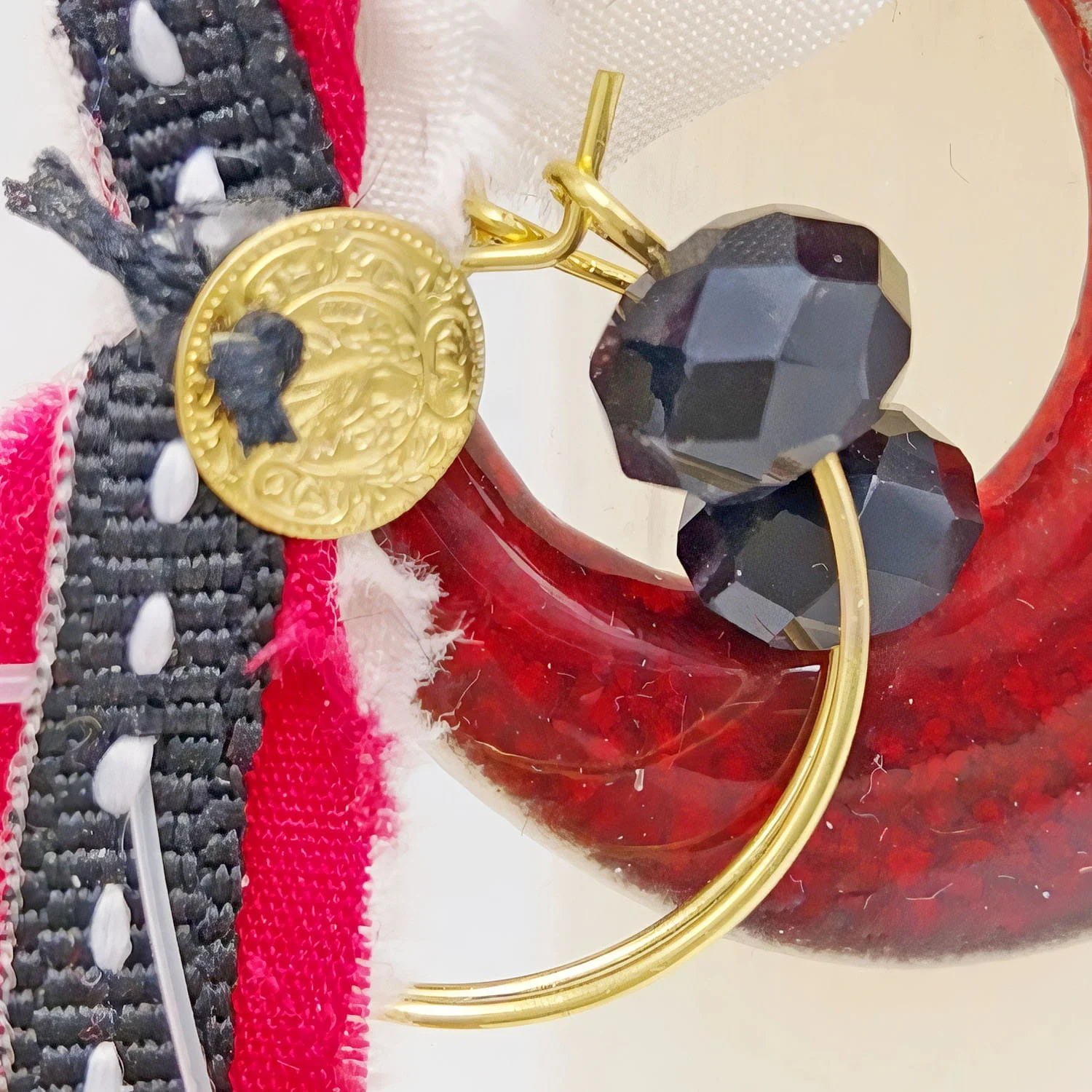Λευκή τετράγωνη αρωματική λαμπάδα 25 εκ. από παραφίνη στολισμένη με χειροποίητο κεραμικό στοιχείο και σκουλαρίκια κρίκους.